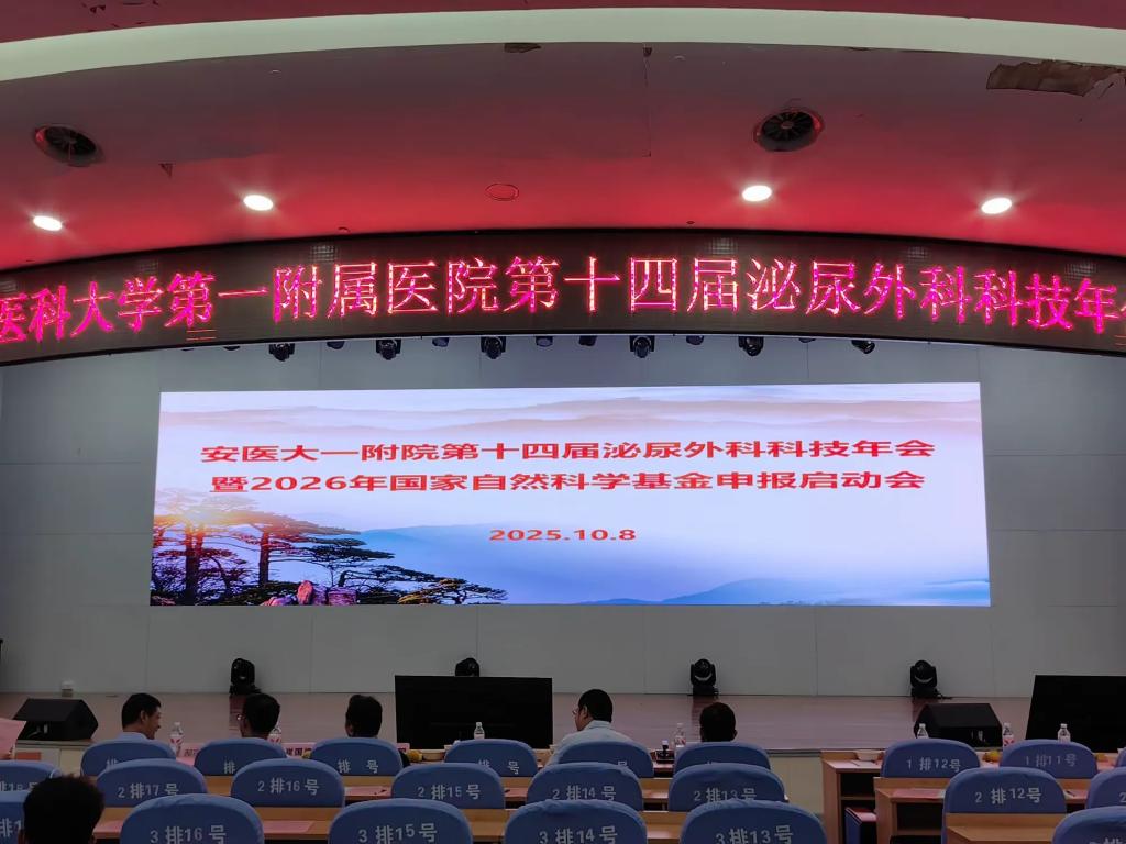 2025年10月8日,安医大一附院第十四届泌尿外科科技年会暨2026年国自然申报启动会在内科医技楼四楼会议室顺利召开。本次会议由2026年国自然申报启动会和泌尿外科肿瘤、结石、男科尿控、肾移植等亚专科领域的前沿进展汇报两部分共32项汇报组成。本次会议邀请了安徽医科大学科技产业部执行部长、创新创业学院执行院长孟晓明教授、安医大一附院党委委员、副院长李小虎教授、中国科学技术大学崔国梁教授、胡进明教授前来指导。泌尿外科全体医护人员、进修医师、博硕士研究生等100余人参加了会议。